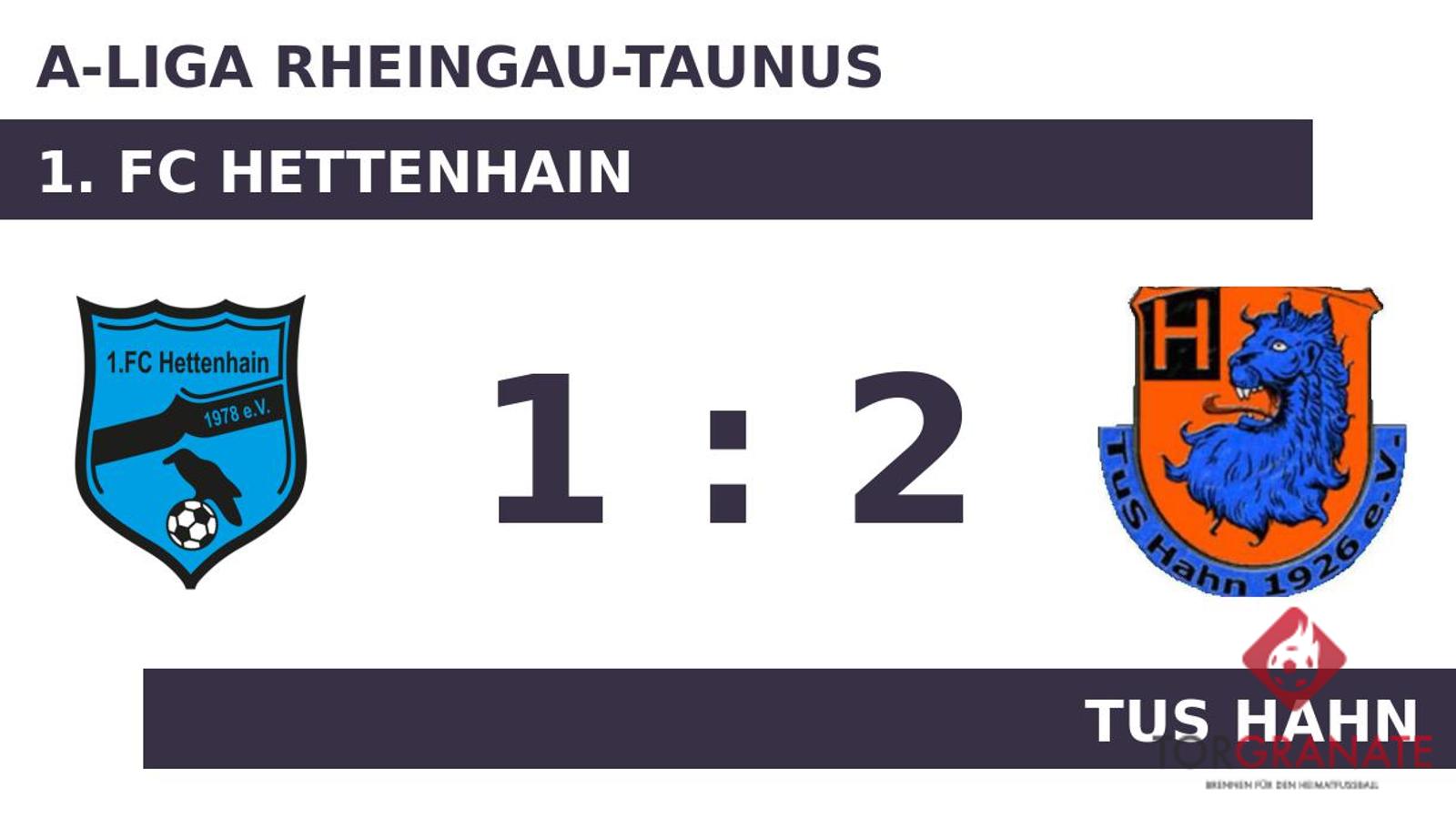 Der 1. FC Hettenhain ging durch Sulayman Alaga in der 22. Minute in Führung. Bis zur Pause fiel kein weiteres Tor, sodass es schließlich mit unverändertem Ergebnis in die Kabinen ging. K. A. beförderte das Leder zum 1:1 des TuS Hahn in die Maschen (63.). Felix Kohlstadt brachte den Ball zum 2:1 zugunsten des TuS Hahn über die Linie (70.). Schließlich holte der TuS Hahn gegen den direkten Abstiegskonkurrenten die Big Points und feierte einen 2:1-Sieg.