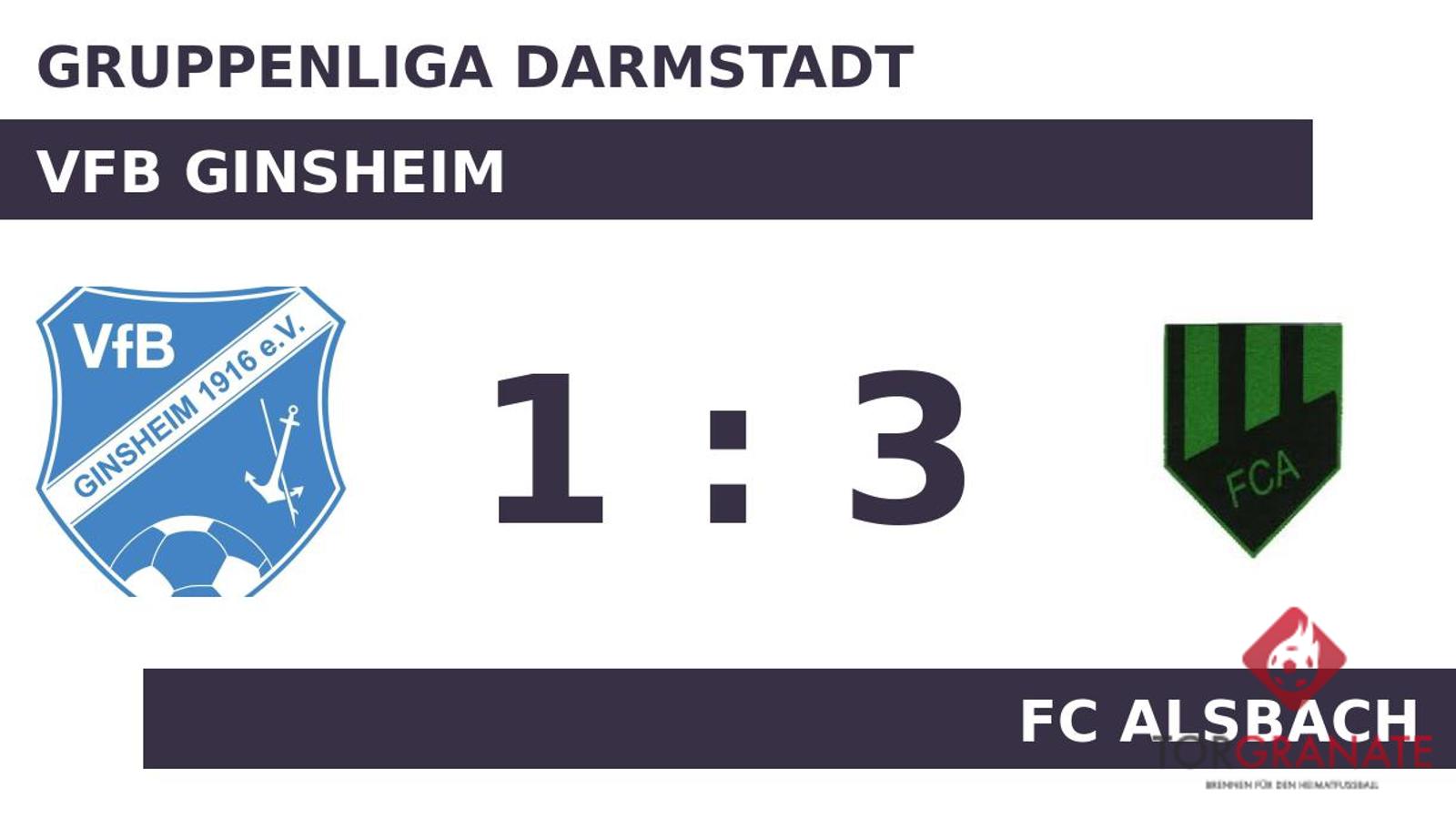 Maxim Akulov schoss in der 29. Minute vom Elfmeterpunkt das erste Tor des Spiels für den VfB Ginsheim. Zur Pause hatten die Ginsheimer eine hauchdünne Führung inne. Denis Dalus war zur Stelle und markierte das 1:1 des FC Alsbach (48.). Riccardo D Addona brachte den VfB Ginsheim per Doppelschlag ins Hintertreffen, als er in der 63. und 75. Minute vollstreckte. Kurz vor dem Ende des Spiels nahm der FC Alsbach noch einen Doppelwechsel vor, sodass Leif Kattge und Vebi Ferati für Maurice Götz und Andre Berberich weiterspielten (90.). Die 1:3-Heimniederlage des VfB Ginsheim war Realität, als der Unparteiische die Partie letztendlich abpfiff.