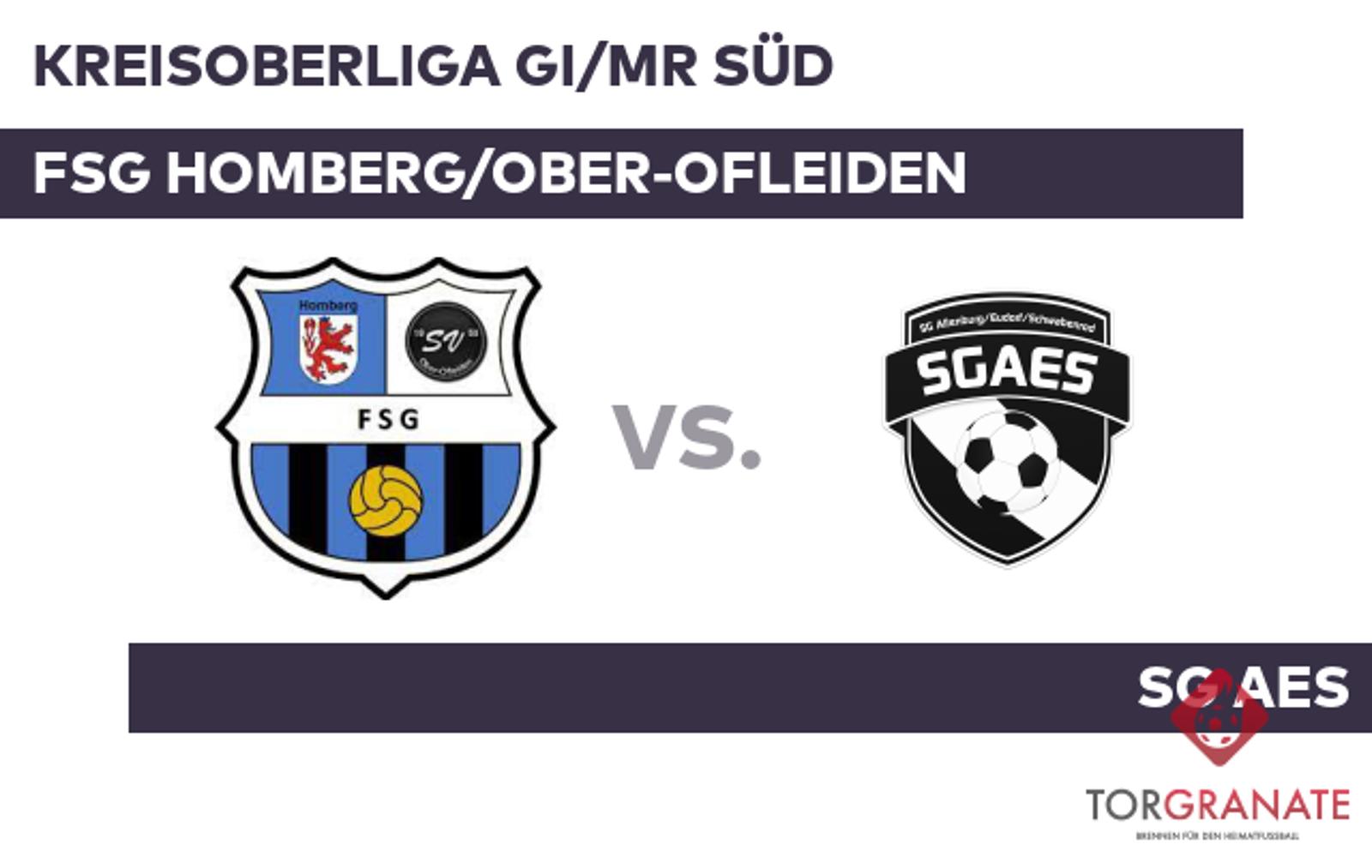 Die SG AES beweist Vollstreckerqualitäten. Durchschnittlich markiert man mehr als drei Treffer pro Begegnung. Der Offensivhunger des Homberg/Ober-Ofl. ist gewaltig. Mehr als drei geschossene Tore pro Spiel belegen das eindrucksvoll. Aufgrund der eigenen Heimstärke (2-1-0) wird die FSG Homberg/Ober-Ofleiden diesem Spiel mit entsprechendem Selbstbewusstsein entgegensehen. Der tabellarische Abstand ist gering, beide Mannschaften trennen nur vier Zähler.