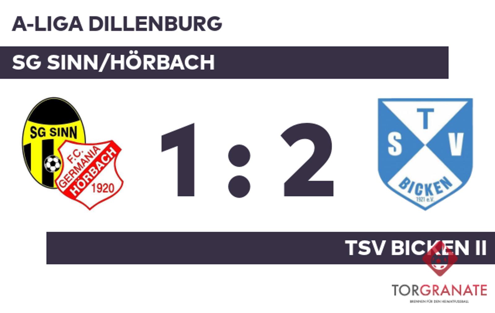 A-Liga Dillenburg: SG Sinn/Hörbach – TSV Bicken II, 1:2 (0:0)