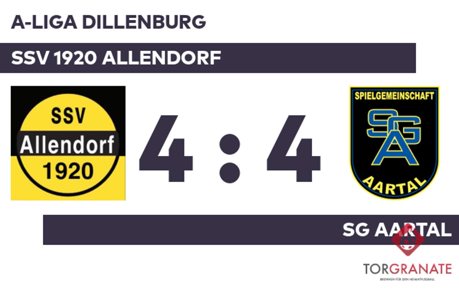 A-Liga Dillenburg: SSV 1920 Allendorf – SG Aartal, 4:4 (0:2)