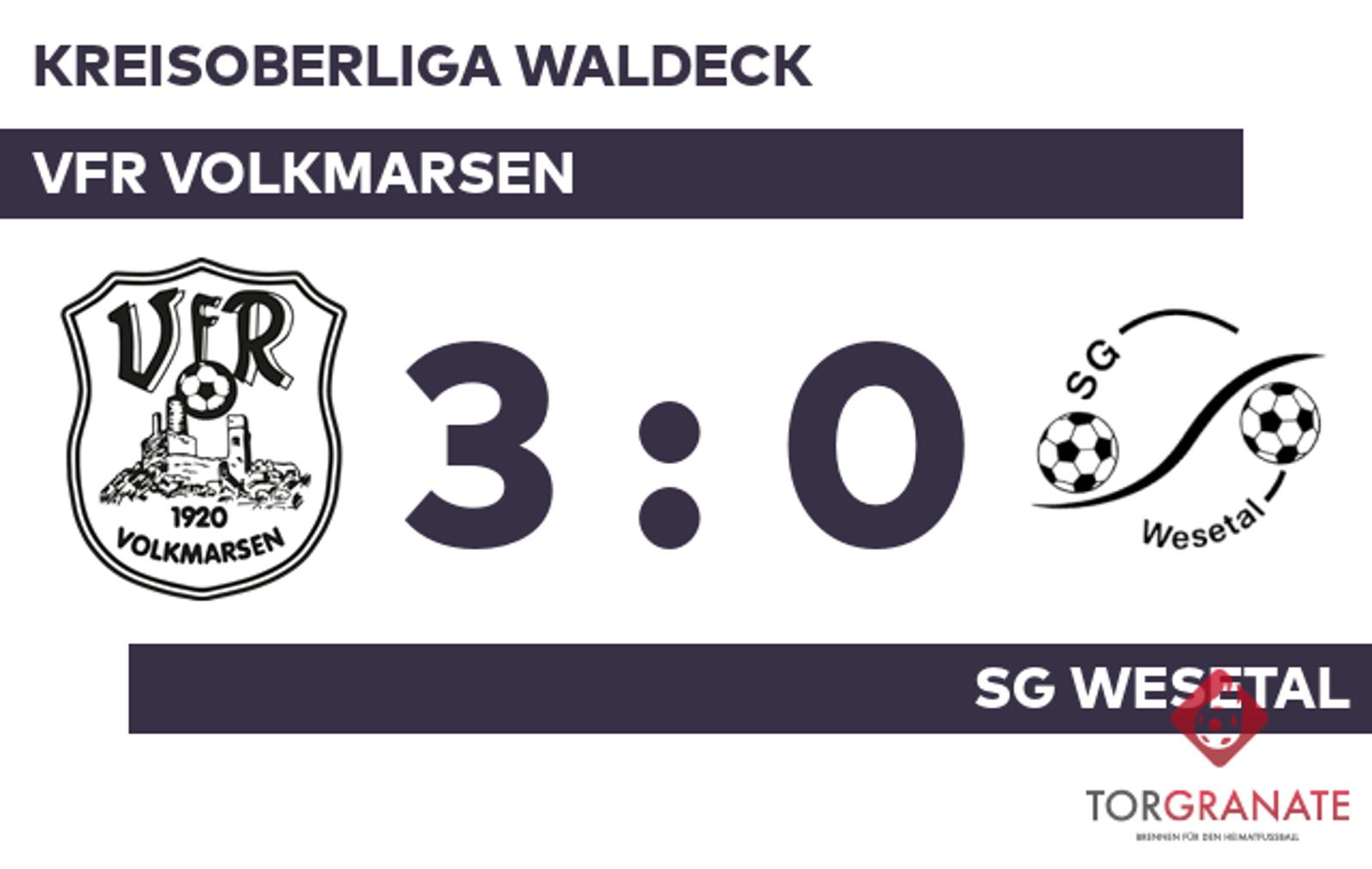 Kreisoberliga Waldeck: VfR Volkmarsen – SG Wesetal, 3:0 (0:0)