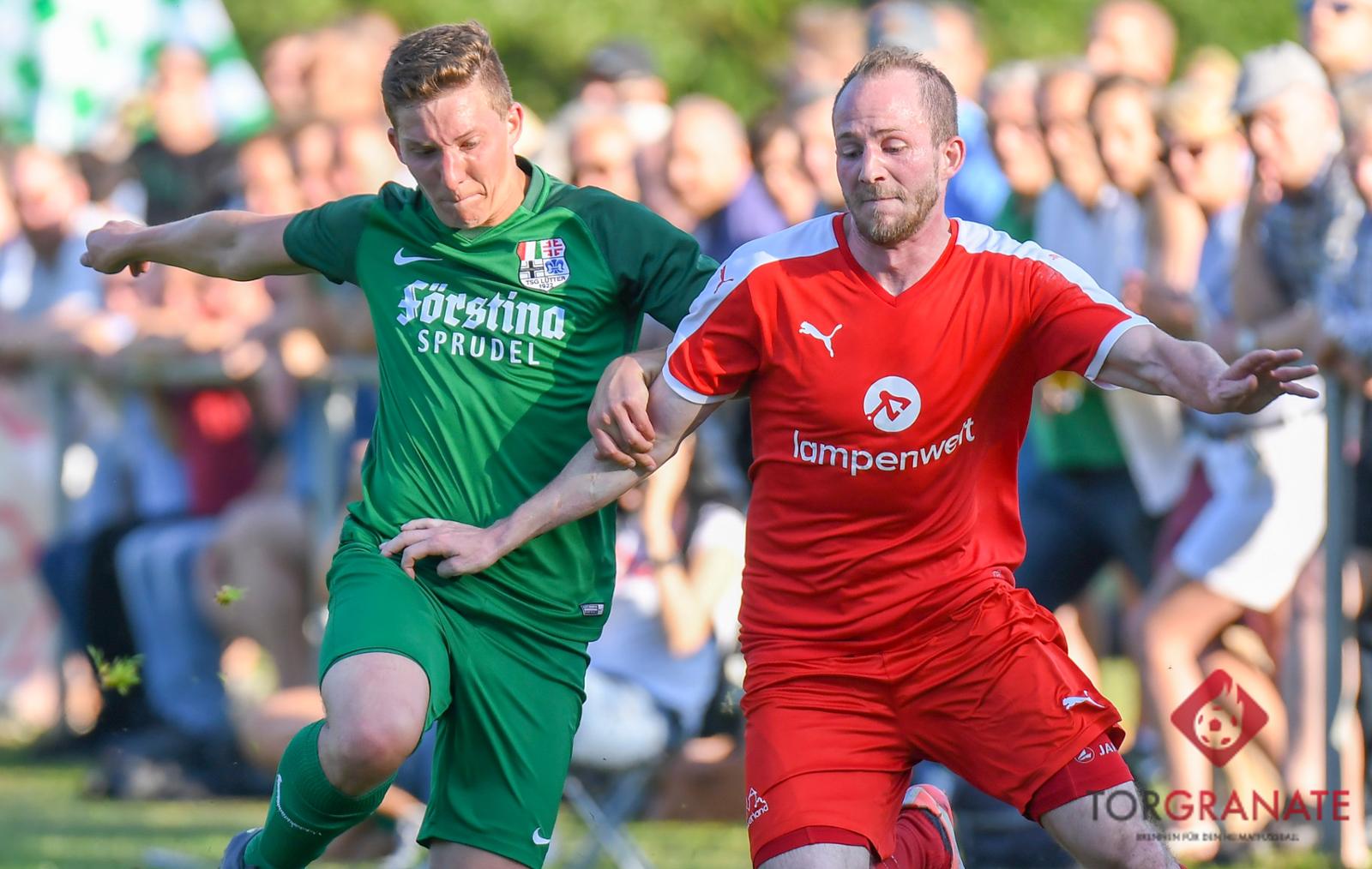 Rene Breitenbach (links, noch im Trikot der TSG Lütter) schoss drei Tore für den SV Uttrichshausen. Foto: Charlie Rolff