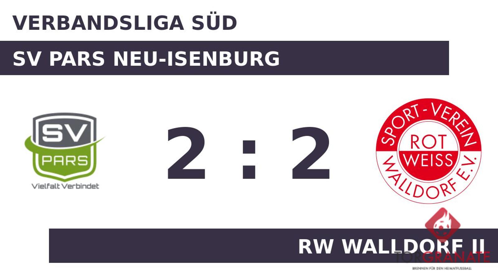 Louay Lamrabat besorgte vor 105 Zuschauern das 1:0 für den SV Pars Neu-Isenburg. Yassin El Haddoudi beförderte das Leder zum 2:0 des SV Pars über die Linie (27.). Die Hintermannschaft des RW Walldorf II ließ bis zur Pause kein weiteres Tor zu und es ging bei unverändertem Stand in die Kabinen. Die Einwechslung von Jerome Jampe, welcher für Fabian Heidenreich kam, sollte die Rot-Weißen wachrütteln (54.). Das 1:2 der Walldorfer stellte Kays Iraqi sicher (64.). In der 84. Minute gelang dem Gast, was zur Pause in weiter Ferne war: der Ausgleichstreffer durch Jampe. Gedanklich hatte der SV Pars Neu-Isenburg den Sieg bereits sicher, doch eine famose Aufholjagd sicherte dem RW Walldorf II am Ende noch den Teilerfolg.