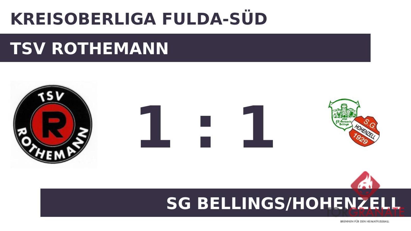 Bellings/Hohenzell ging durch Valentin Dersch in der 29. Minute in Führung. Ein Tor mehr für die SG machte den Unterschied zur Pause zwischen den beiden Mannschaften aus. In der Pause stellte der TSV Rothemann personell um: Per Doppelwechsel kamen Robin Kirsch und Felix Stephan auf den Platz und ersetzten Yannick Hohmann und Jan Götte. Jakob Müglich witterte seine Chance und schoss den Ball zum 1:1 für die Rothemänner ein (49.). Letzten Endes wurde im Aufeinandertreffen des TSV Rothemann mit der SG Bellings/Hohenzell kein Sieger ermittelt.