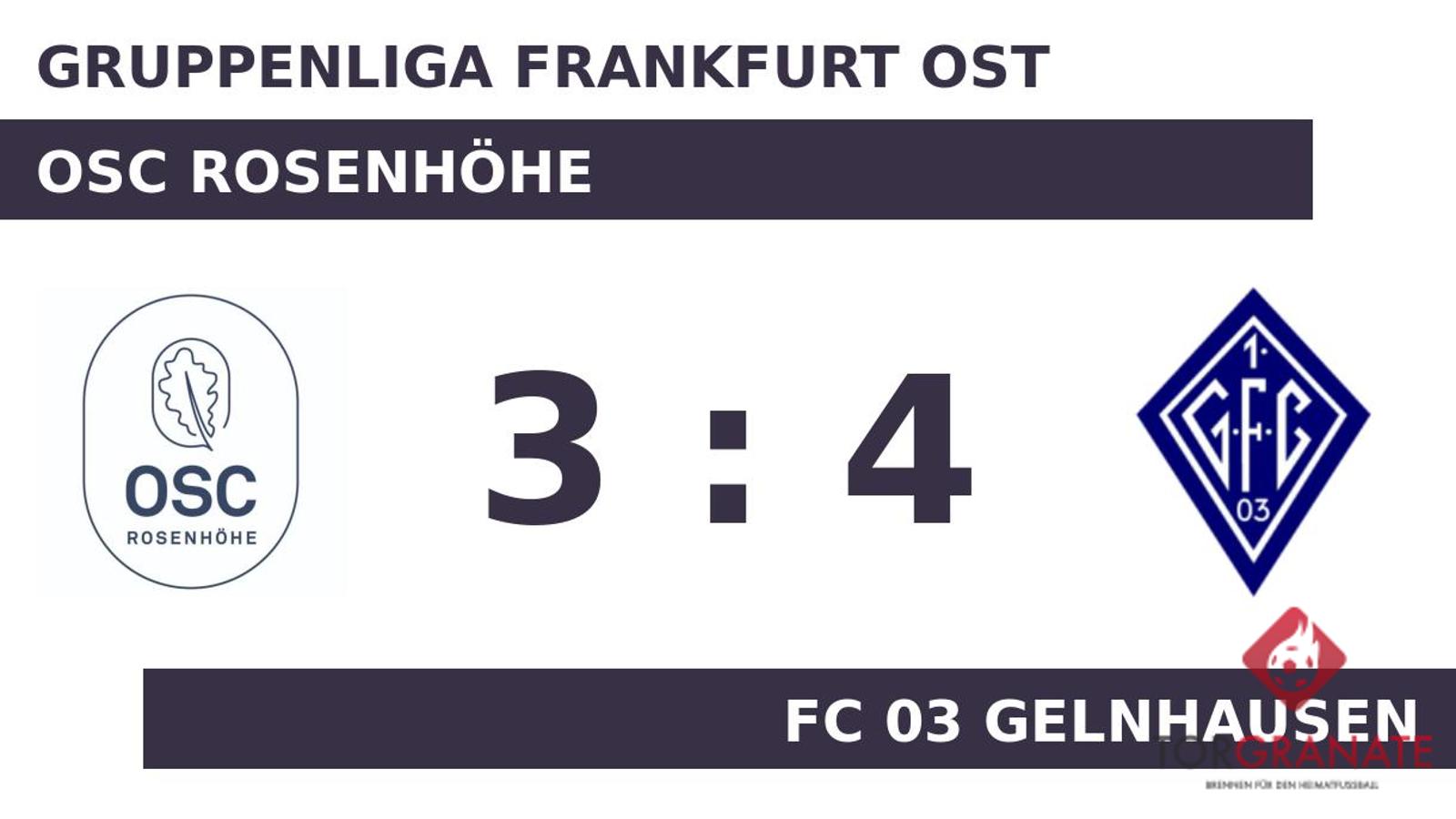 Loris Seree-Lang brachte den FC 03 Gelnhausen in der 34. Minute nach vorn. Noah Schumacher schockte den FC 03 und drehte die Partie mit seinem Doppelpack für den OSC Rosenhöhe (35./41.). Die Pausenführung des OSC Rosenhöhe fiel knapp aus. Der FC 03 Gelnhausen drängte auf den Ausgleich. Für frischen Wind sollten Aykan Varol und Jeremy Amako sorgen, die per Doppelwechsel für Angelo De Carvalho und k.A. k.A. auf das Spielfeld kamen (64.). In der 66. Minute brachte Amako den Ball im Netz des OSC Rosenhöhe unter. Ab der 66. Minute bereicherte der für Mohamed Bousselmi eingewechselte Christian Rüger den OSC im Vorwärtsgang. Der Treffer zum 3:2 sicherte der Rosenhöhe nicht nur die Führung – es war auch bereits der dritte von Schumacher in diesem Spiel (70.). Für die OSCler nahm das Match in der Schlussphase eine bittere Wende. Kahraman Damar und Seree-Lang drehten den Spielstand (81./88.) und sicherten dem FC 03 Gelnhausen einen Last-Minute-Sieg. Letzten Endes holte der FC 03 Gelnhausen gegen den OSC Rosenhöhe drei Zähler.