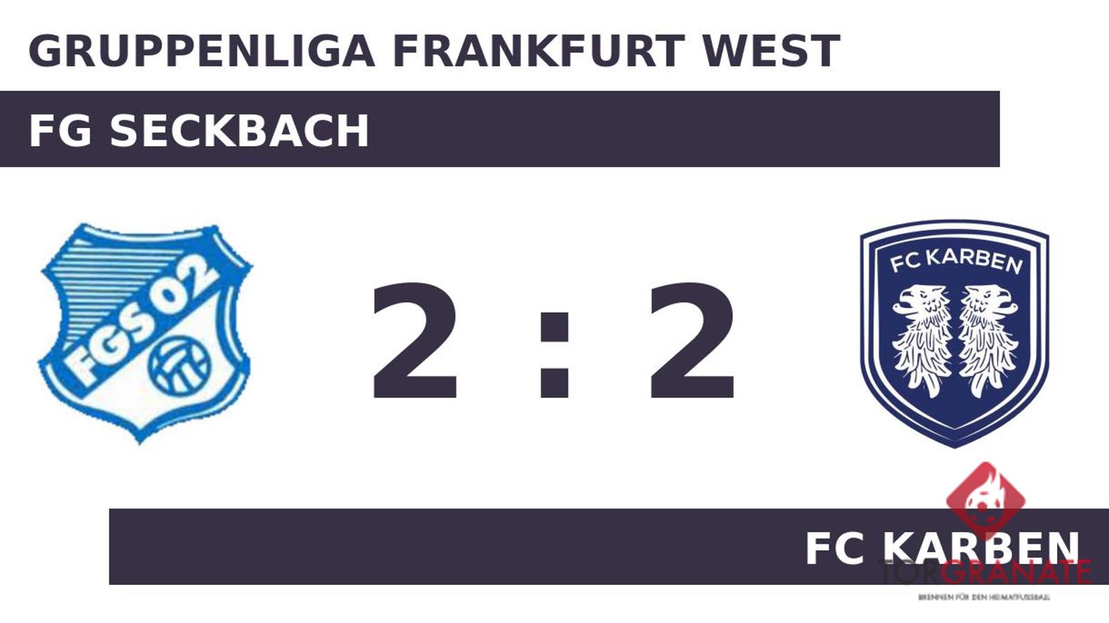 Auf die vermeintliche Siegerstraße brachte Axel Furkert sein Team in der 39. Minute. Ehe der Schiedsrichter Jan-René Seif (Beselich) die Protagonisten zur Pause bat, traf k. A. zum 1:1 zugunsten der FG Seckbach (41.). Zum Seitenwechsel hatte keine Mannschaft die Oberhand gewonnen. Unentschieden lautete der Zwischenstand. Owen Hare brachte dem FC Karben nach 50 Minuten die 2:1-Führung. Die FG Seckbach drängte auf den Ausgleich. Für frischen Wind sollten Paul Harmann und Luis Rodriguez Melendo sorgen, die per Doppelwechsel für A. und Maximilian Waas auf das Spielfeld kamen (67.). Florian Schuberth versenkte den Ball in der 69. Minute im Netz des FC Karben. Letzten Endes wurde in der Begegnung der FG Seckbach mit dem FC Karben kein Sieger gefunden.