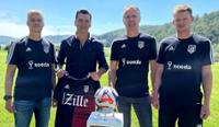 Karsten Voigt (Zweiter von links) wird neuer Trainer beim VfL Wanfried. Sehr zur Freude des Vorstandsteams um Ingo Schuchhardt (von links), Andreas Löffler und Marcell König. © Verein