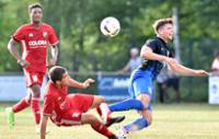 Wie schon im Hinspiel ging es auch heute wieder ordentlich zur Sache, wie hier zwischen Christian Lehmann (links) und Florian Storch. Foto: Charlie Rolff