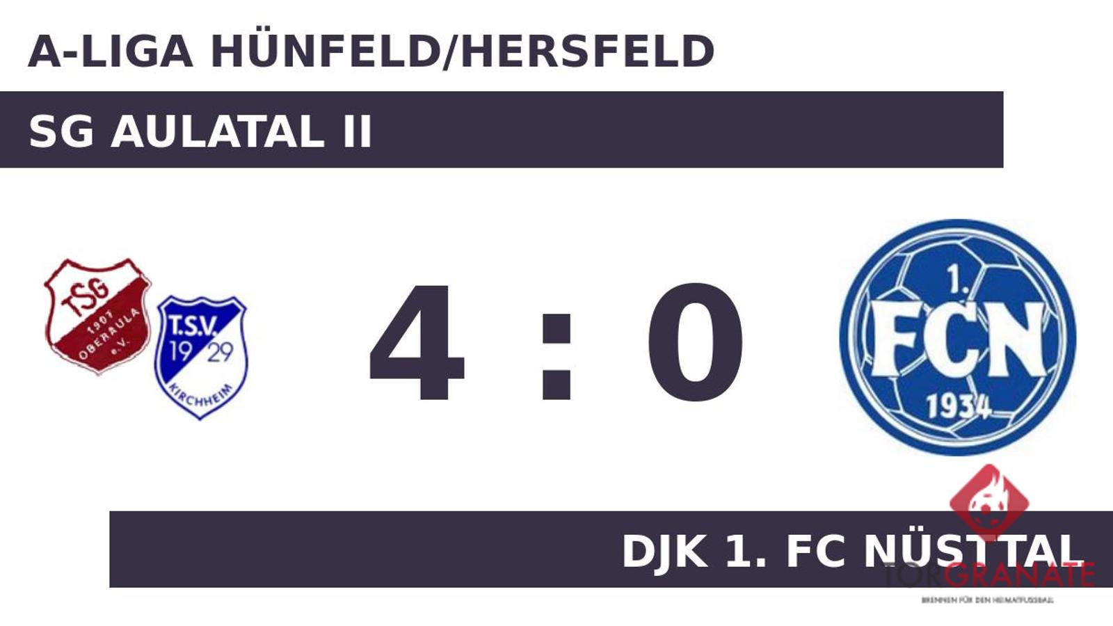 Joshua Piel war es, der in der 18. Minute den Ball im Gehäuse des DJK 1. FC Nüsttal unterbrachte. Weitere Tore gab es bis zum Pausenpfiff nicht und so ging es mit der Führung der SG Aulatal II in die Kabine. Mit einem schnellen Doppelpack (49./54.) zum 3:0 schockte Piel den DJK 1. FC Nüsttal. Die SG Aulatal II nahm in der 57. Minute einen Wechsel zweier etatmäßiger Verteidiger vor, als Max Boländer für Arnold Stricker vom Platz ging. Johannes Weber besorgte in der Schlussphase schließlich den vierten Treffer für die Spielgemeinschaft (81.). Letztlich kam die SG Aulatal II gegen den DJK 1. FC Nüsttal zu einem verdienten 4:0-Sieg.