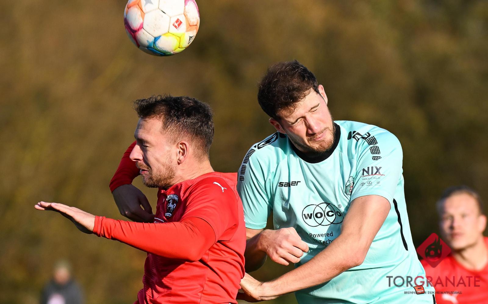 Die Punkte wurden im Duell zwischen der SG Viktoria Bronnzell um Marek Weber (rot) und der SG Bad Soden (Till Hilchenbach) geteilt. © Memento36