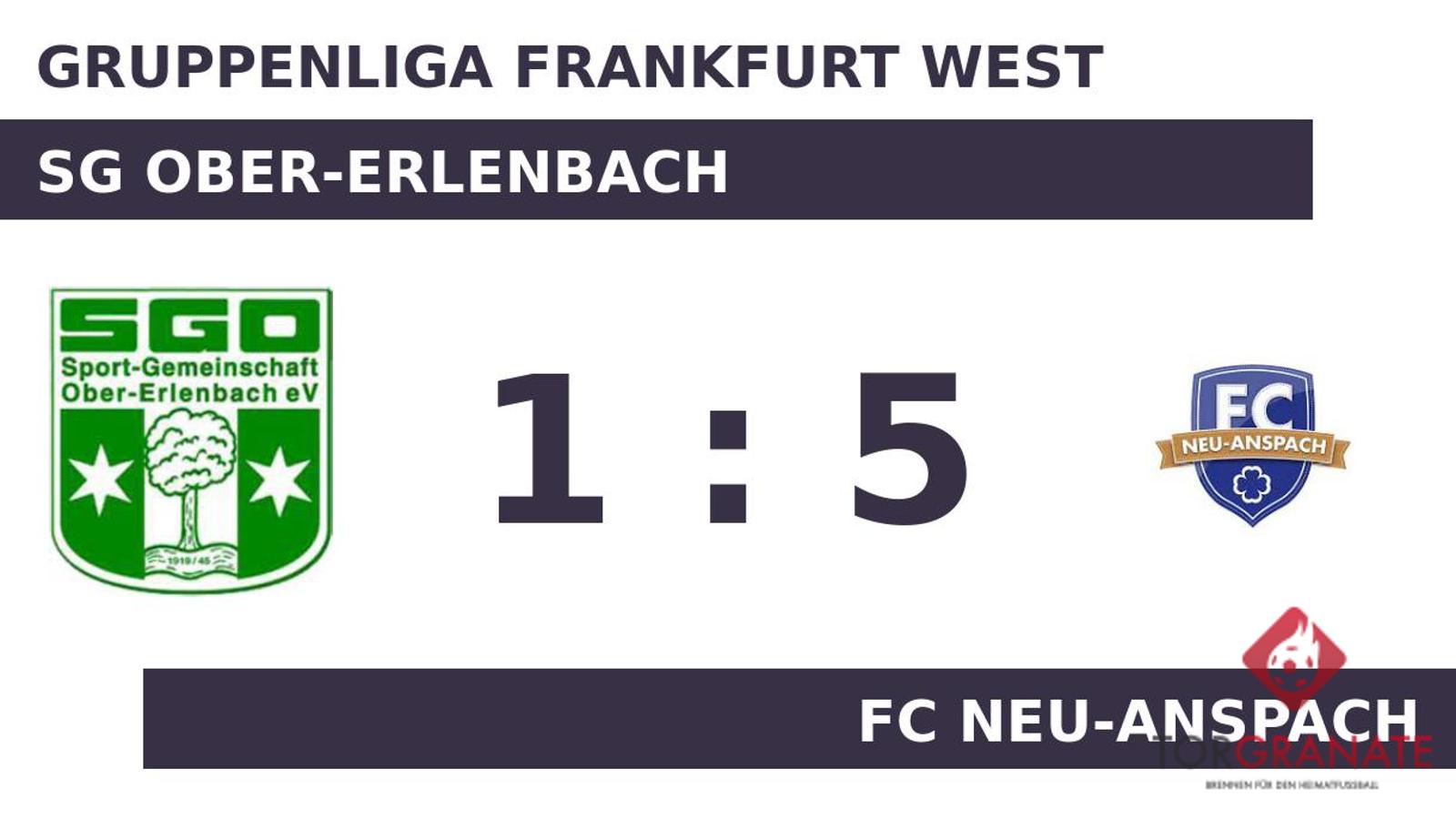 Christopher Skoczny brachte die SG Ober-Erlenbach in der 18. Minute ins Hintertreffen. Der FC Neu-Anspach baute den Vorsprung mit der Hilfe des Gegners weiter aus: 2:0 für den FCNA durch ein Eigentor der SG Ober-Erlenbach in der 44. Minute. Es waren die Gäste, die zur Pause eine Führung ihr Eigen nannten. In der 51. Minute verwandelte Markus Hofmeier dann einen Elfmeter für den FC Neu-Anspach zum 3:0. Mit dem 4:0 von Bilal El Makrini für die Neu-Anspacher war das Spiel eigentlich schon entschieden (52.). Janik Mahnke erzielte in der 55. Minute den Ehrentreffer für die SG Ober-Erlenbach. Ab der 75. Minute bereicherte der für El Makrini eingewechselte Patrick Berschick den FC Neu-Anspach im Vorwärtsgang. In der 75. Minute stellte die SG Ober-Erlenbach personell um: Per Doppelwechsel kamen Sebastian Seitz und Yannic Grosskopf auf den Platz und ersetzten Mahnke und Pierre Hübsch. Lars Günther gelang in den Schlussminuten noch ein weiterer Treffer für den FC Neu-Anspach (85.). Letztlich fuhr der Gast einen souveränen Erfolg ein, dessen Grundstein im ersten Spielabschnitt gelegt worden war.