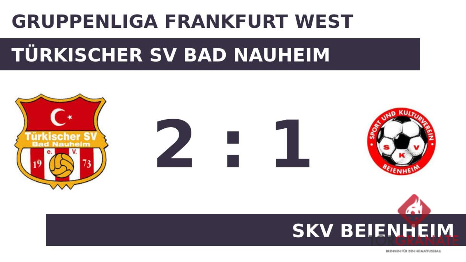 Denis Ehrlicher brachte den TSV Bad Nauheim in der vierten Minute ins Hintertreffen. Zur Pause war der SKV Beienheim im Fahrwasser und verbuchte eine knappe Führung. Beim SKV gab es ein neues Gesicht auf dem Platz: Bogdan Pavel Muntean wurde für Marvin Niederhaeuser eingewechselt. Der Sport- und Kulturverein musste den Treffer von Abdul Baki Özisli zum 1:1 hinnehmen (62.). Joel Tekie brachte dem Türkischer SV Bad Nauheim nach 66 Minuten die 2:1-Führung. Als der Unparteiische die Partie abpfiff, reklamierte der TSV schließlich einen 2:1-Heimsieg für sich.