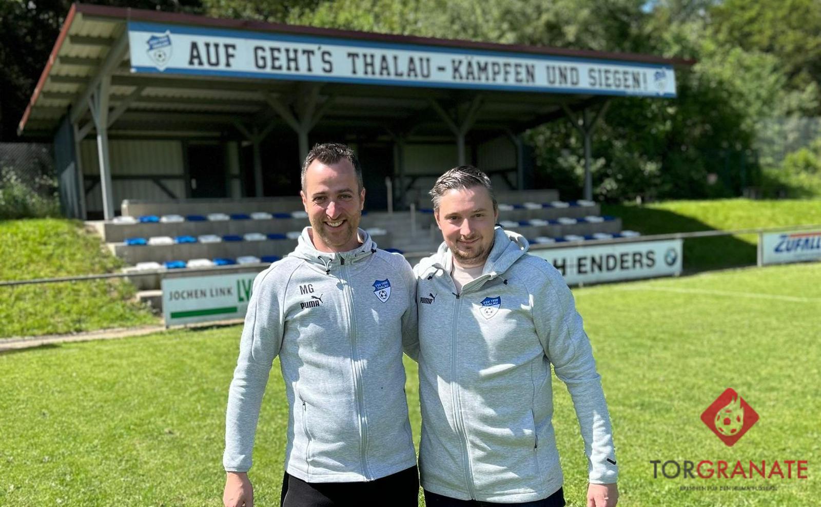 Marc Gärtner (links) aus der Sportlichen Leitung des FSV Thalau freut sich über die Rückkehr von Christian Link. © Verein