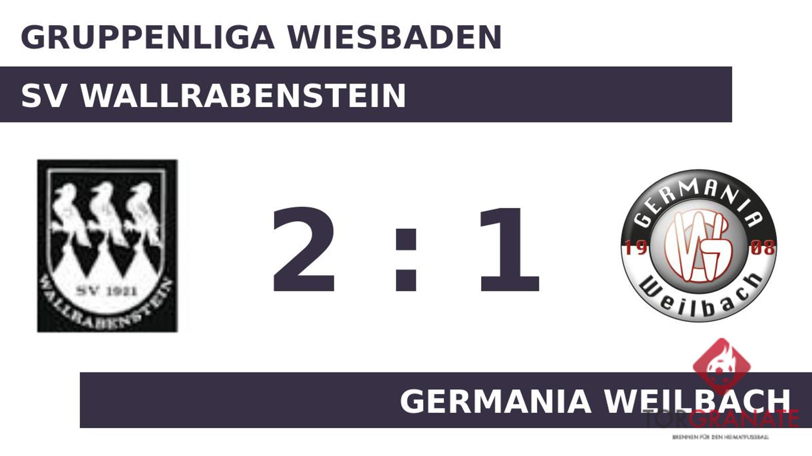 Die Germania Weilbach erwischte einen Blitzstart ins Spiel. Robin Becker traf in der sechsten Minute zur frühen Führung. Matti Meier nutzte die Chance für den SV Wallrabenstein und beförderte in der 33. Minute das Leder zum 1:1 ins Netz. Zum Seitenwechsel hatte keine Mannschaft die Oberhand gewonnen. Unentschieden lautete der Zwischenstand. In Durchgang zwei lief Pierre Alusse anstelle von Marvin David Wuntke für die Germania Weilbach auf. Anstelle von Janis Reil war nach Wiederbeginn Samed Muric für das Wallrabenstein im Spiel. Dass die Wallrabensteiner in der Schlussphase auf den Sieg hofften, war das Verdienst von Mikko Meier, der in der 76. Minute zur Stelle war. Als der Unparteiische Alexander Kessler (Wettenberg) die Partie abpfiff, reklamierte der SVW schließlich einen 2:1-Heimsieg für sich.