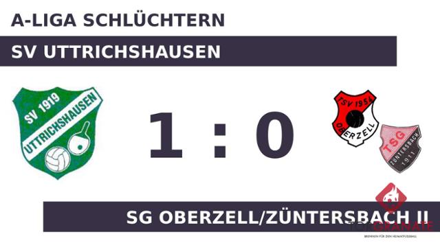 Gabriel Jäckel nutzte die Chance für den SV Uttrichshausen und beförderte in der 14. Minute das Leder zum 1:0 ins Netz. Den Unterschied zwischen den beiden Mannschaften machte bis zur Pause lediglich ein Treffer aus, den der SVU für sich beanspruchte. In der Pause stellte die SG Oberzell/Züntersbach II personell um: Per Doppelwechsel kamen Jens Müller und Christian Manns auf den Platz und ersetzten Janick Lins und Dennis Kretz. Schlussendlich pfiff der Unparteiische Abidin Yüksel (Wartenberg) das Spiel ab, ohne dass Tore im zweiten Durchgang zu bejubeln waren. Der SV Uttrichshausen brachte am Ende einen knappen Dreier unter Dach und Fach.