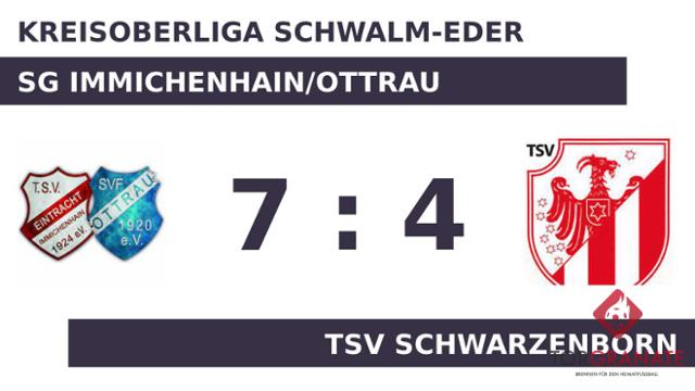 Sascha Kevin Steinbrecher trug sich in der 20. Spielminute in die Torschützenliste ein. Für das 2:0 der SG Immichenhain/Ottrau zeichnete Tobias Itzenhäuser verantwortlich (21.). Dustin Bambey verkürzte für den TSV Schwarzenborn später in der 34. Minute auf 1:2. Spielstark zeigte sich Immichenhain/Ottrau, als Marco Hermann (40.) und Itzenhäuser (43.) innerhalb weniger Minuten für die Vorentscheidung sorgten. Der Gastgeber dominierte den Gegner zur Pause nach Belieben und ging mit einer deutlichen Führung in die Kabine. Mit dem Treffer zum 2:4 in der 47. Minute machte Bambey zwar seinen Doppelpack perfekt – der Rückstand zur SG Immichenhain/Ottrau war jedoch weiterhin groß. Das 5:2 für Immichenhain/Ottrau stellte Itzenhäuser sicher. In der 49. Minute traf er zum dritten Mal während der Partie. Luca Bachmann beförderte das Leder zum 3:5 des TSV Schwarzenborn über die Linie (55.). Mit zwei schnellen Treffern von Itzenhäuser (56.) und Timon Falk (58.) machte die SG Immichenhain/Ottrau deutlich, dass mit diesem Angriff jederzeit zu rechnen ist. In der 69. Minute brachte Max Braunhardt das Netz für den TSV Schwarzenborn zum Zappeln. Letztlich hat der TSV Schwarzenborn den Befreiungsschlag klar verpasst. Gegen den direkten Widersacher um den Klassenverbleib, Immichenhain/Ottrau, bekam man das Fell über die Ohren gezogen.