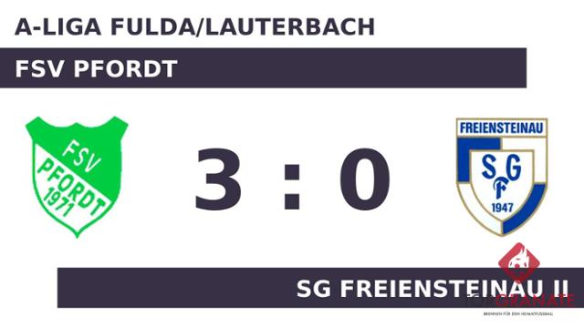 Max Trabes brachte sein Team in der 14. Minute nach vorn. Bis zur Halbzeitpause konnte keine der Mannschaften ihre Torbilanz mehr verbessern. Tom Schmidt versenkte die Kugel zum 2:0 (58.). Den Vorsprung des FSV Pfordt ließ Trabes in der 63. Minute anwachsen. Nach der Beendigung des Spiels durch Referee Holger Muschik (Hünfeld) feierte der FSV einen dreifachen Punktgewinn gegen SG Freiensteinau II.
