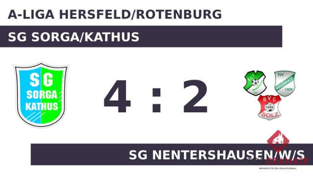 Für das erste Tor sorgte Arne Lidzba. In der elften Minute traf der Spieler der SG Sorga/Kathus ins Schwarze. Wer glaubte, die SG NWS sei geschockt, irrte. Kevin Adler machte unmittelbar nach dem Rückschlag den Ausgleich perfekt (12.). Nach nur 30 Minuten verließ Christian Bachmann von der Dreier-Spielgemeinschaft das Feld, Jan Schenck kam in die Partie. Eine Aussage darüber, wer am Ende die Nase vorn haben würde, war nach dem Abpfiff der ersten Halbzeit noch nicht zu treffen. Es ging mit einem Gleichstand in die Kabinen. Mit einem Wechsel – Paul Mohr kam für Timothy Darmann – startete die SG Nentershausen/W/S in Durchgang zwei. Rudolf Görzen stellte die Weichen für die SG Sorga/Kathus auf Sieg, als er in Minute 53 mit dem 2:1 zur Stelle war. Aus der Ruhe ließ sich die SG NWS nicht bringen. Adler erzielte wenig später den Ausgleich (55.). Daniel Vollmer versenkte die Kugel zum 3:2 (79.). Martin Waldeck stellte wenige Minuten vor dem Schlusspfiff den Stand von 4:2 für die SG Sorga/Kathus her (86.). Mit dem Ende der Spielzeit strich die SG Sorga/Kathus gegen die SG Nentershausen/W/S die volle Ausbeute ein.